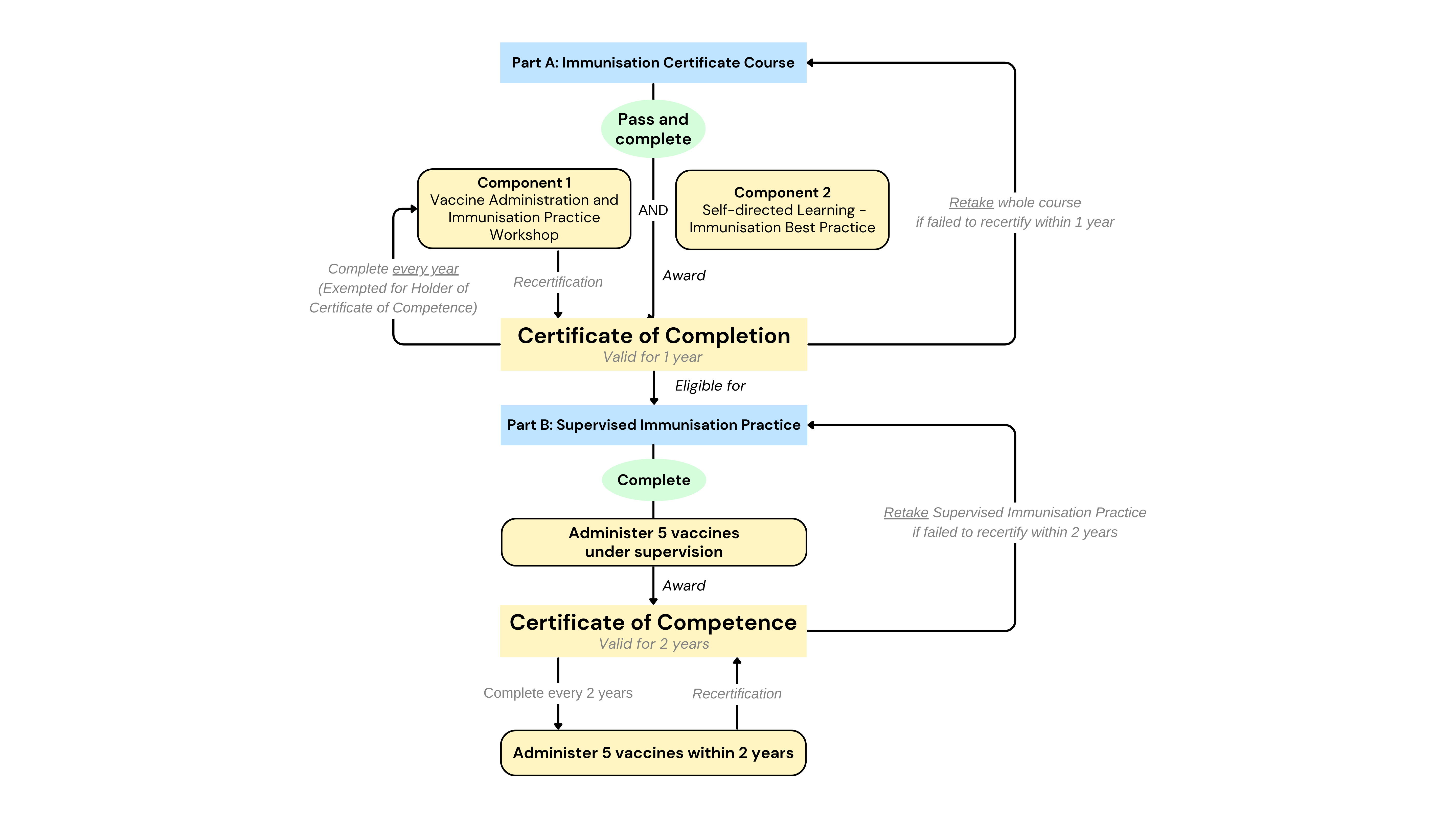 - Recertification is necessary. The process is illustrated as follows:
